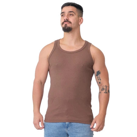 Regata Masculina Modelo Americano Ribana Canelada Algodão e Elastano MARRON